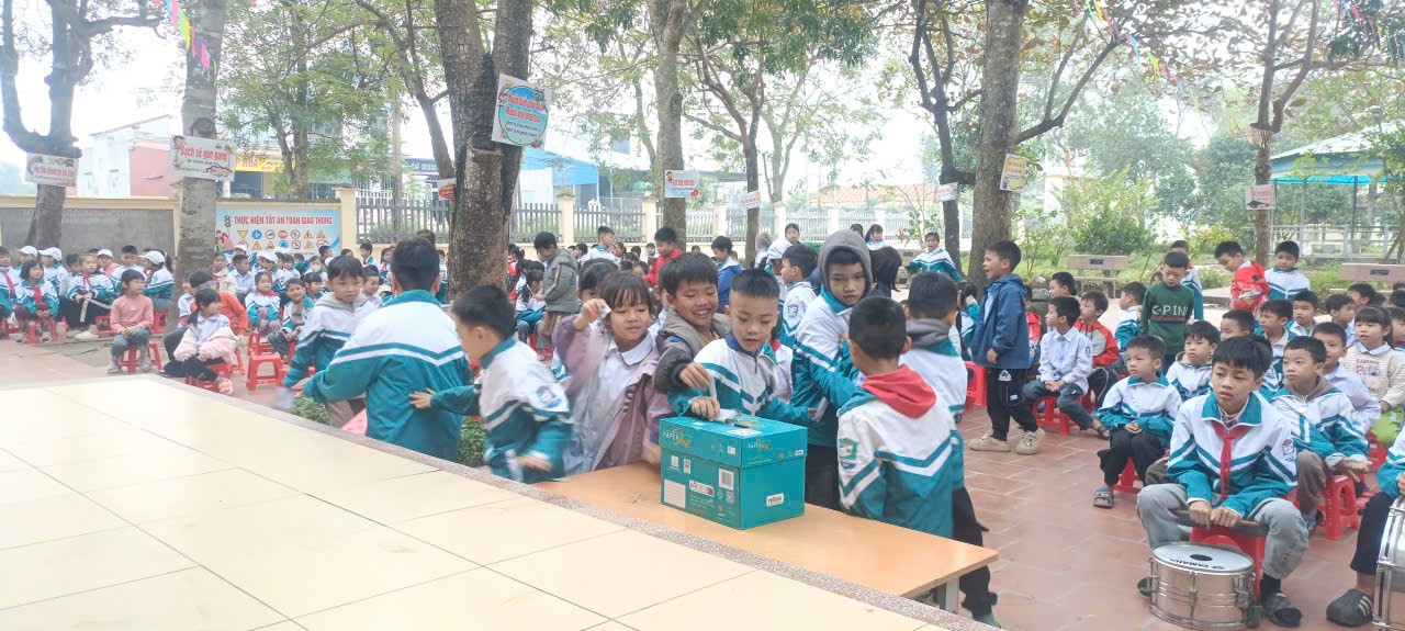 Học sinh Trường Tiểu học Yên Thành quyên góp ủng hộ đồng bào lũ lụt